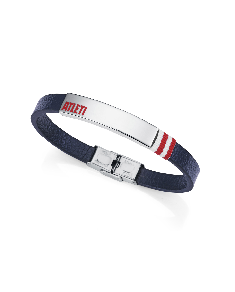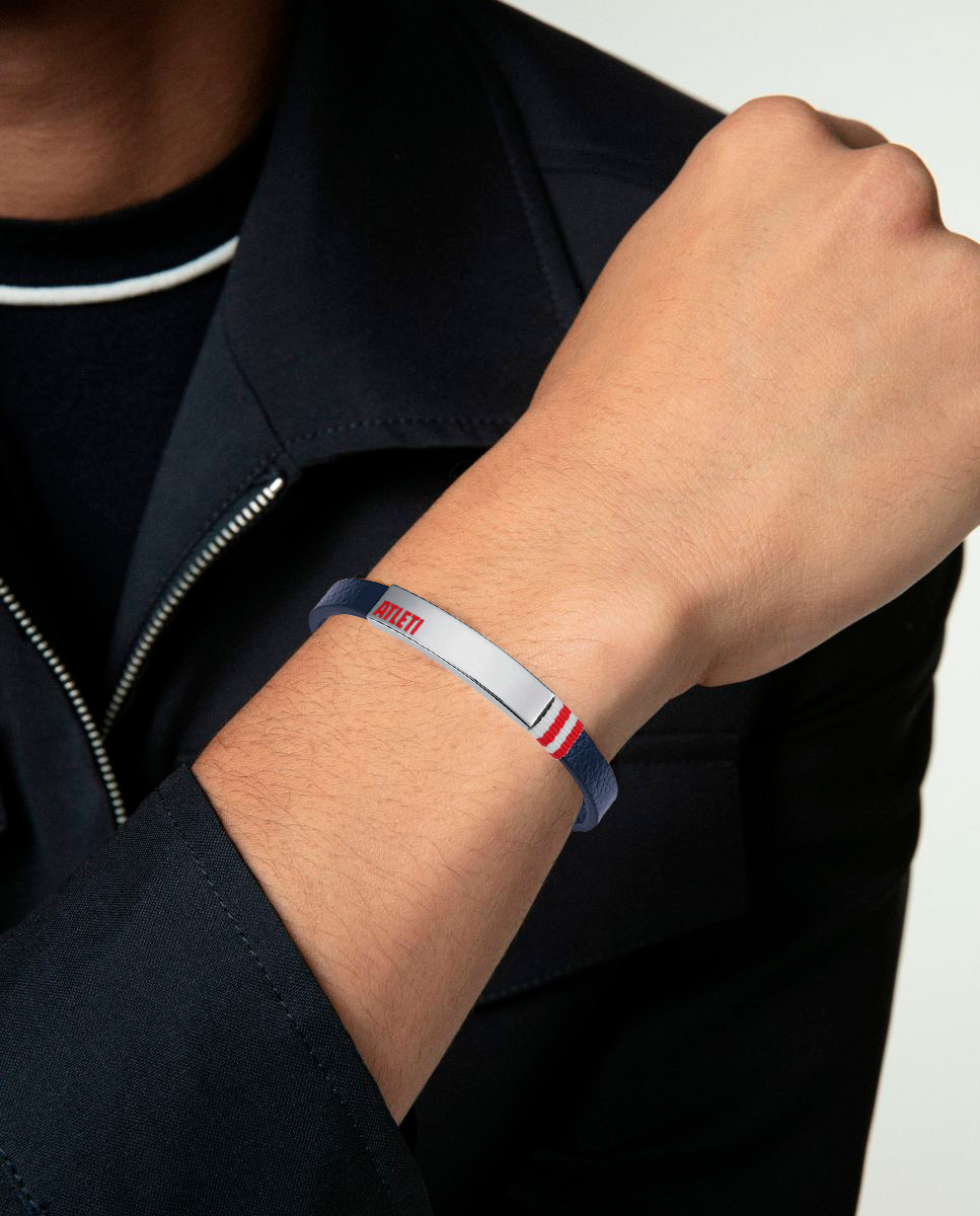 Pulsera de hombre del Atlético de Madrid, fabricada en acero y piel azul con detalles que destacan el orgullo rojiblanco. Decorada con esmalte rojo y nylon en rojo y blanco, esta pulsera combina perfectamente el estilo deportivo y elegante. Su diseño moderno y sofisticado es ideal para los aficionados que quieren llevar los colores de su equipo de manera discreta pero llena de carácter. Luce tu pasión por el equipo con este complemento de Viceroy. Largo 21,5 cm.