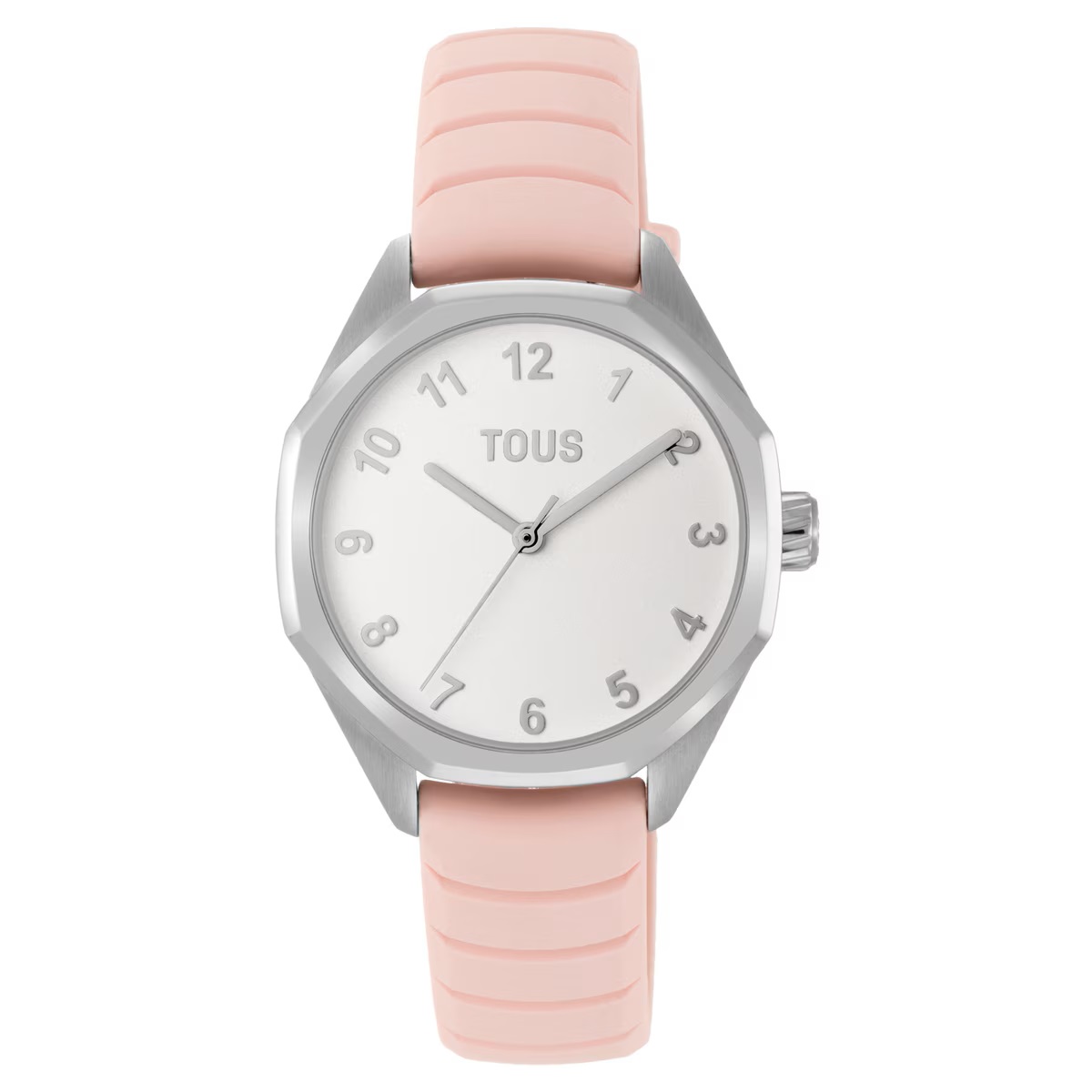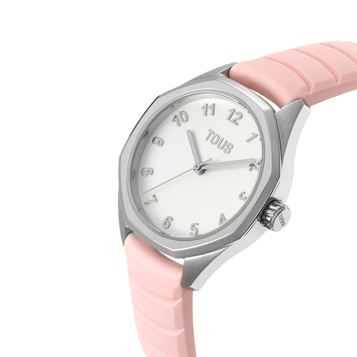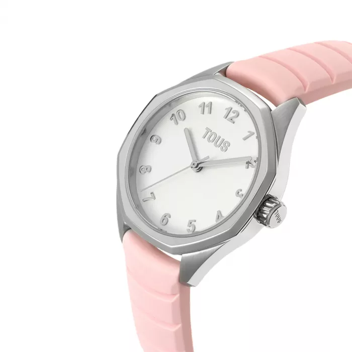 Reloj analógico TOUS Now KDT con correa de caucho en color rosa. Diámetro: 31 mm. Cristal: zafiro redondo plano con recubrimiento antirreflejo. Funciones: hora, minutos y segundos. Impermeable a 10 ATM. Brazalete: 14mm x 14mm x 70mm / 16mm x 16mm x 110mm. Cierre hebilla.